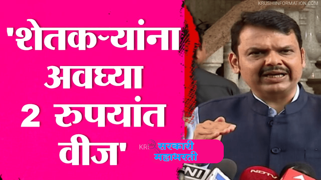 महाराष्ट्रातील शेतकऱ्यांना आता अवघ्या 2 रुपयांत वीज मिळणार आहे. 7 मार्च 2024 रोजी, उपमुख्यमंत्री आणि ऊर्जामंत्री देवेंद्र फडणवीस यांनी या योजनेची घोषणा केली.